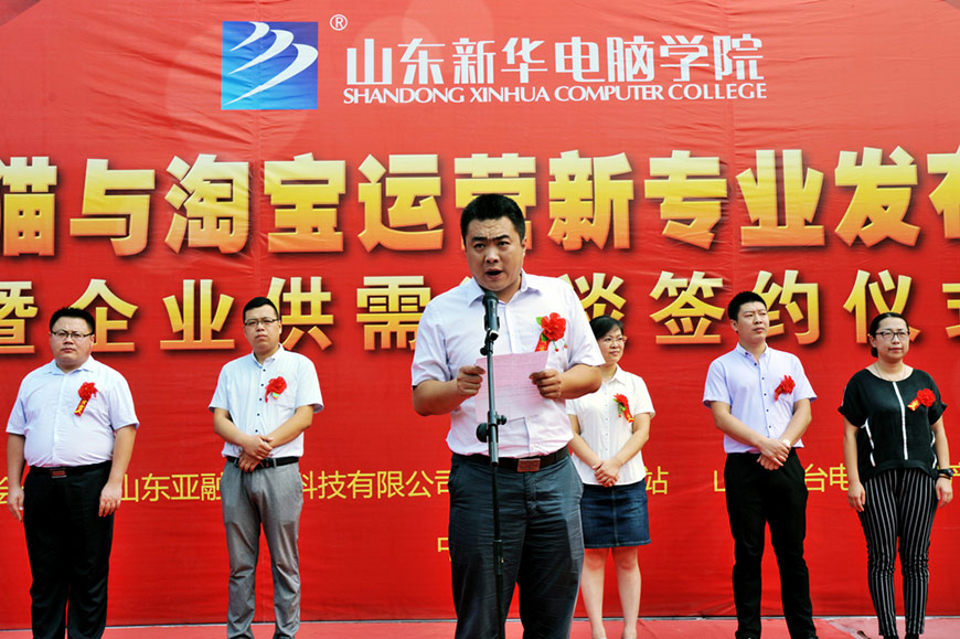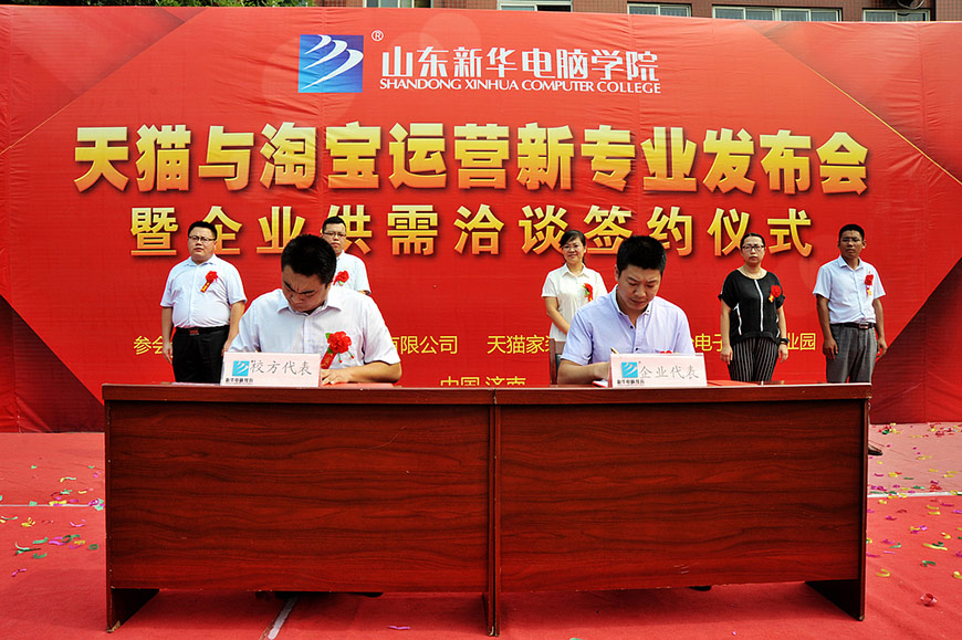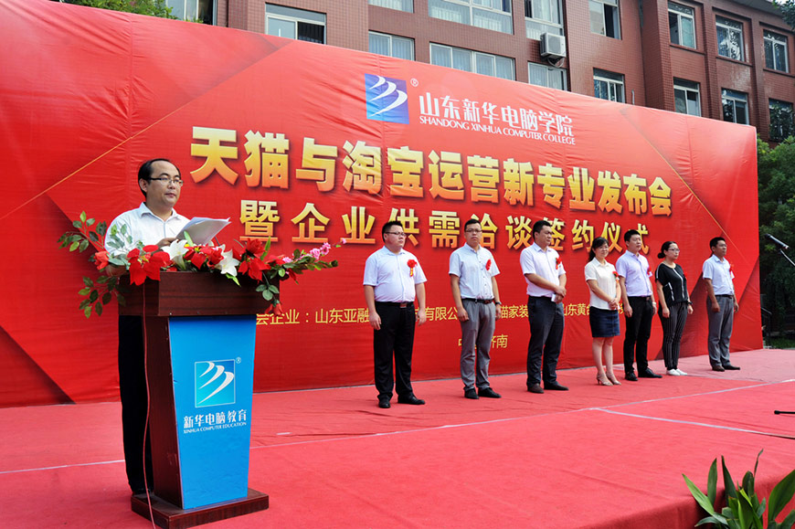 近年来,随着中国电子商务产业的异军突起,各行各业纷纷都在搭建或开拓自己的电商渠道,行业发展的如此迅猛,但电商领域的高端人才缺口也在不断的放大。面对这样的时代背景,山东新华电脑果断开拓最具前瞻性的新专业,“天猫与淘宝运营”专业就此应运而生。本次不单只是新专业的发布会,同时也是校企供需合作的签约仪式,山东新华电脑学院始终以市场为导向、采用最先进的“校企合作”模式,这种订单式的培养机制,确保了学生们能够学有所长、学有所用。