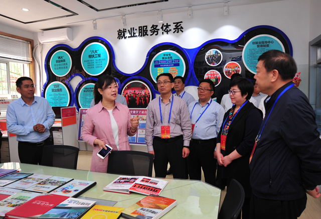 在学院陈伟红院长、陈助理的陪同下,来访领导参观学院创就业指导中心。听取了陈院长关于学校学子就业的汇报后,刘建忠主任对学院的就业情况作出高度赞扬,并对学校的就业工作提出宝贵意见。