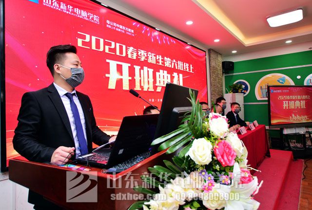 首先,山东新华电脑学院班主任代表夏老师进行发言。在发言中,夏老师对于学子们提出殷切希望。他表示,希望同学们不负众望,刻苦学习技能,勇于拼搏,在疫情期间,做到停课不停学,认真地把握好每一天。